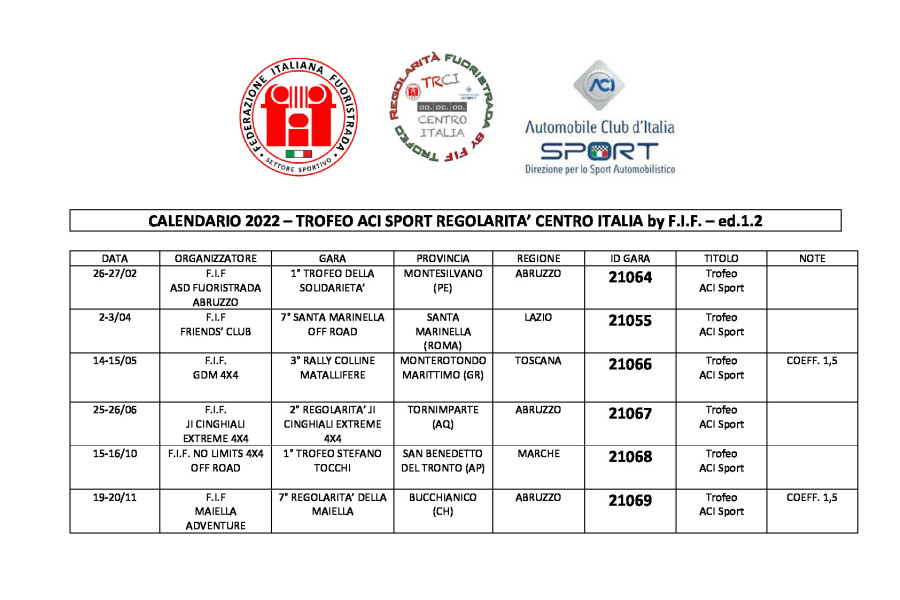 Resoconto e classifiche 1ª Prova T.R.C.I 2022