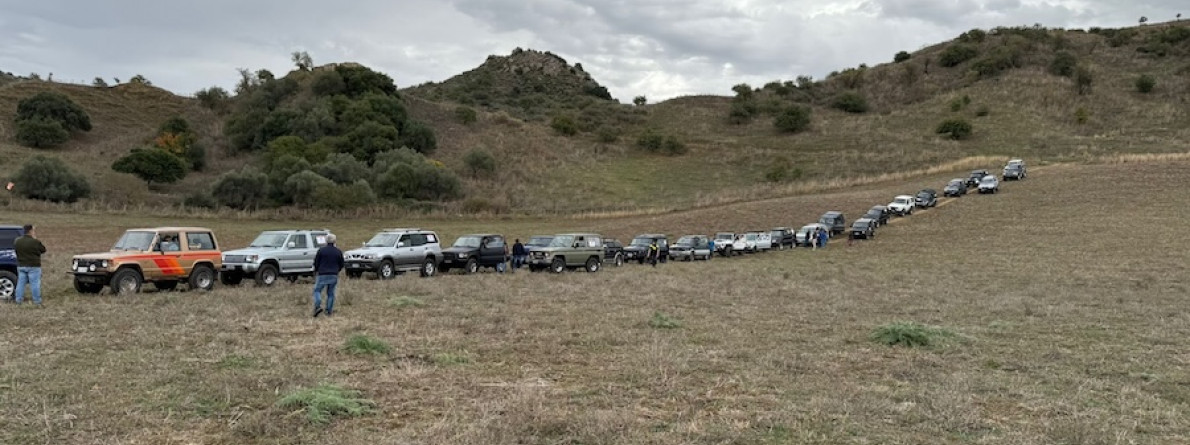 La lunga carovana di fuoristrada del Club 4WD Acireale attraversa le colline dei Nebrodi, immersa in un paesaggio d’autunno.