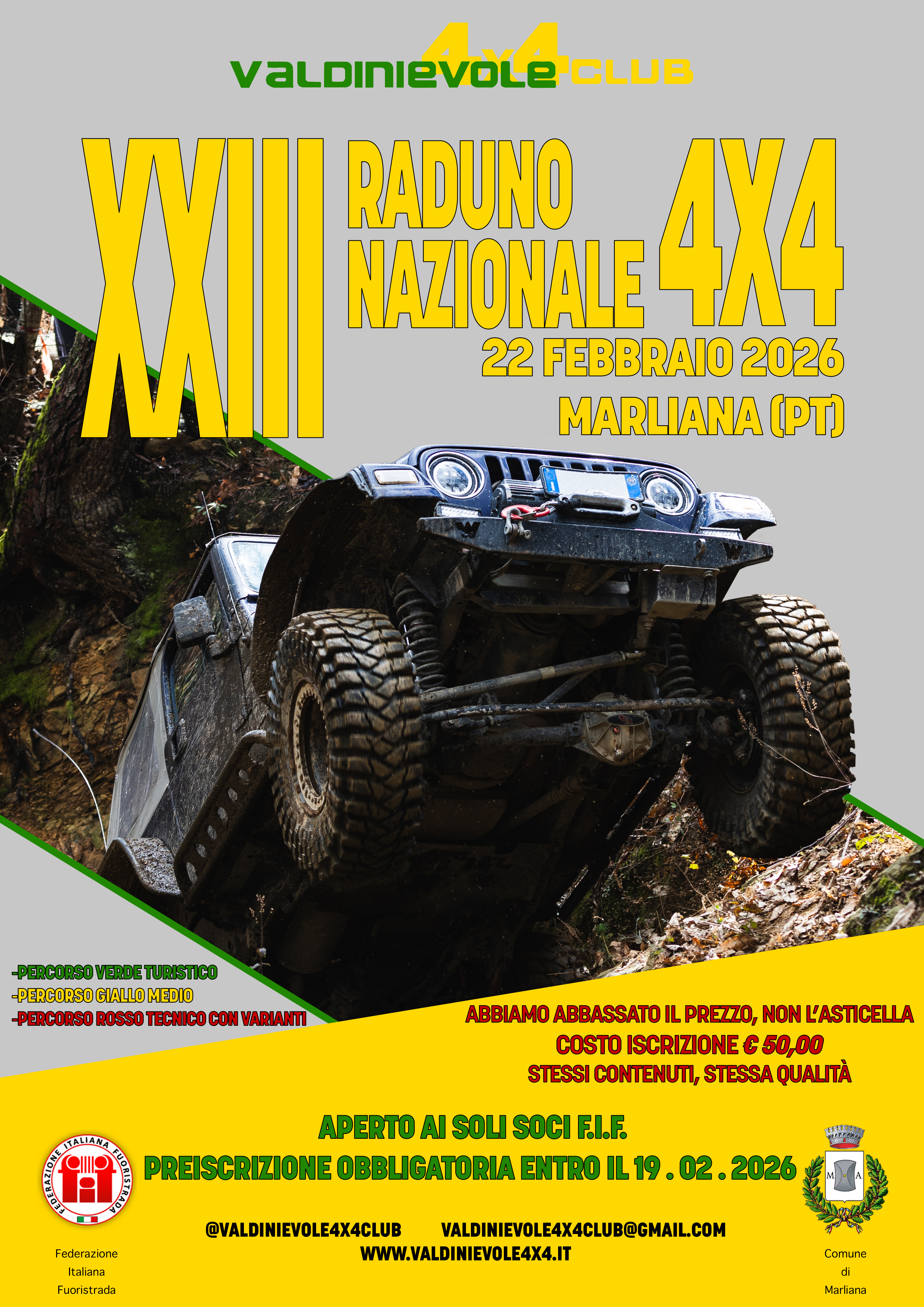 Il VALDINIEVOLE 4X4 CLUB organizza Domenica 22 Febbraio 2026 in Toscana il XXIII Raduno